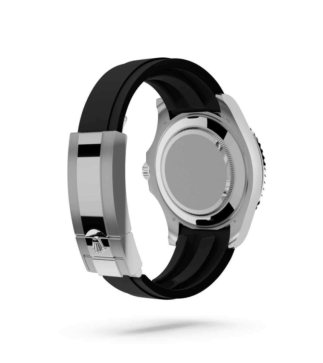 The Yacht-Master’s new Oysterflex bracelet, developed by Rolex and patented, offers a sporty alternative to metal bracelets. The bracelet attaches to the watch case and the Oysterlock safety clasp by a flexible titanium and nickel alloy metal blade. The blade is overmoulded with high-performance black elastomer which is particularly resistant to environmental effects, very durable and perfectly inert for the wearer of the watch. For enhanced comfort, the inside of the Oysterflex bracelet is equipped with a patented longitudinal cushion system that stabilizes the watch on the wrist and fitted with an 18 kt white gold Oysterlock safety clasp. It also features the Rolex Glidelock extension system, designed by the brand and patented. This inventive toothed mechanism, integrated beneath the clasp, allows fine adjustment of the bracelet length by some 15 mm in increments of approximately 2.5 mm, without the use of tools.